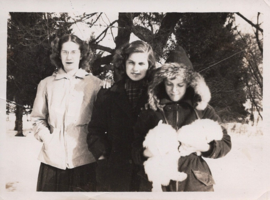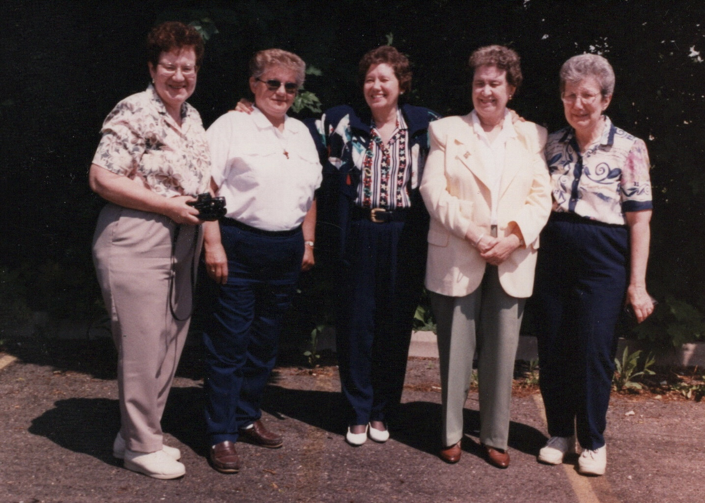 Ruth posed in a park on a road trip with Donna Clements, Barb ? and Marg McNeil