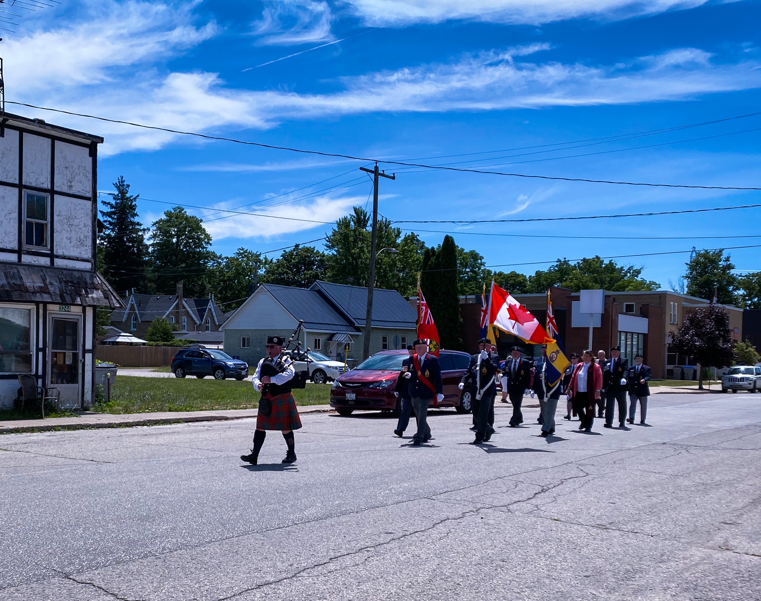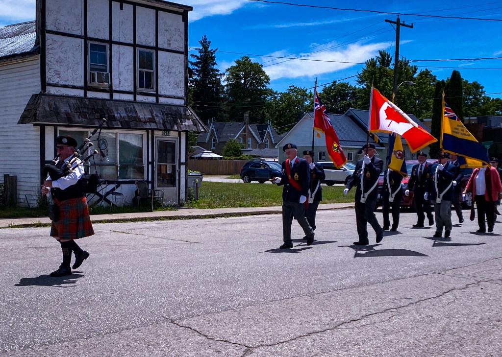 Marching to the Alvinston Cenotaph for the Rededication Ceremony July 9th 2022.