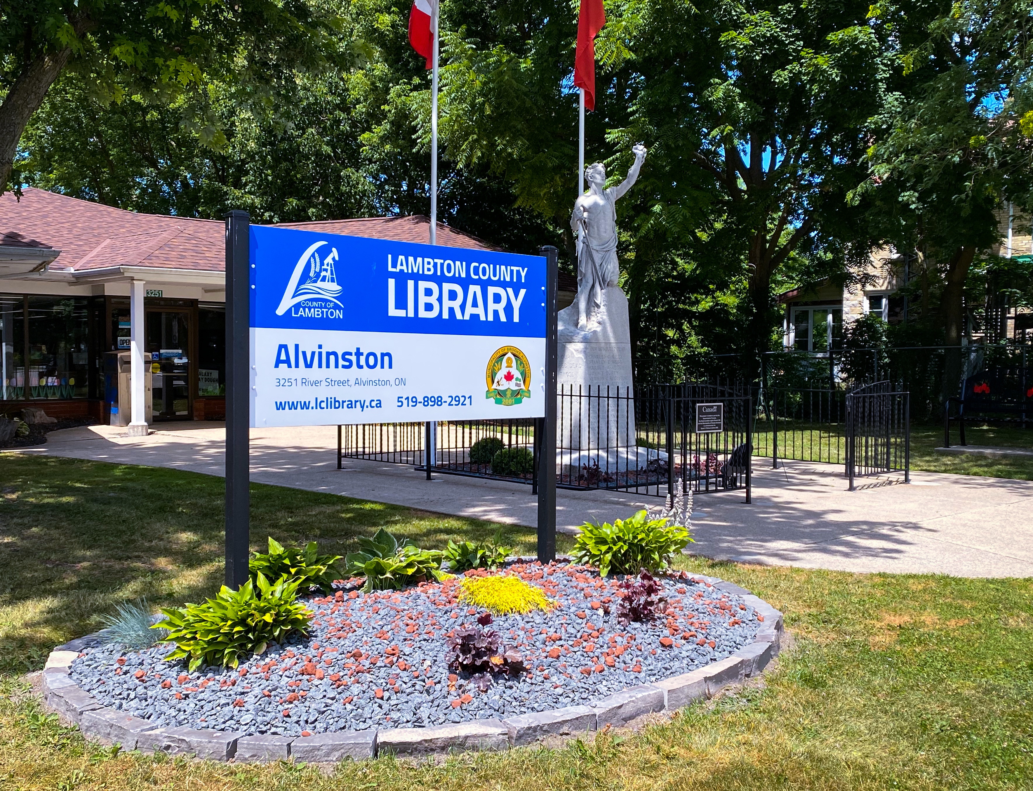 This year the Municipality of Brooke-Alvinston staff worked alongside the Alvinston Legion adding beautiful enhancements to the cenotaph and surrounding area. The Municipality received a grant though Canadian Heritage for the 2022 Platinum Jubilee of Her Majesty Queen Elizabeth II Community projects. In total the Municipality received $5,000 which was spent on new plants, improvements to the fence including new paint, a new bench, engraving Afghanistan into the cenotaph to commemorate the soldiers, the flag poles were also painted and a clean up of the gardens, power washing the surrounding area and the cenotaph itself. A plaque was also installed.